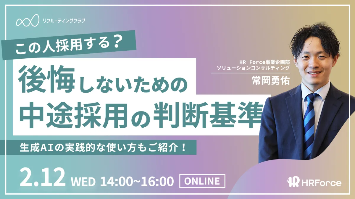 株式会社HR Forceは、2025年2月12日水曜日に「後悔しないための中途採用の判断基準」セミナーを行います。このセミナーは、人事担当者や経営者に向けて、採用ミスマッチを防ぐための具体的な面接評価基準の構築方法を解説し、実際に参加者同士で意見交換を行うワークショップも実施します。