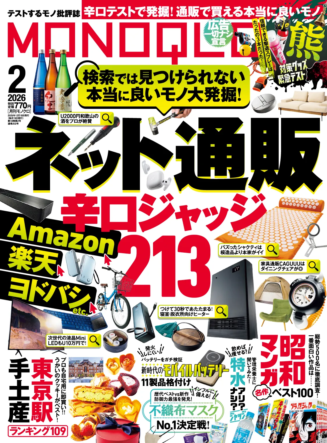 今月の『MONOQLO』が特集するのは、ネット通販で見逃せない掘り出し物ばかり。私たちが目を引く情報は、家電からガジェット、キッチングッズ、日本酒に至るまで多岐にわたります。特に注目したいのが「熊対策アイテム」と「昭和まんが名作ランキング」です。これらは、ぜひ知っておきたいトピックです。