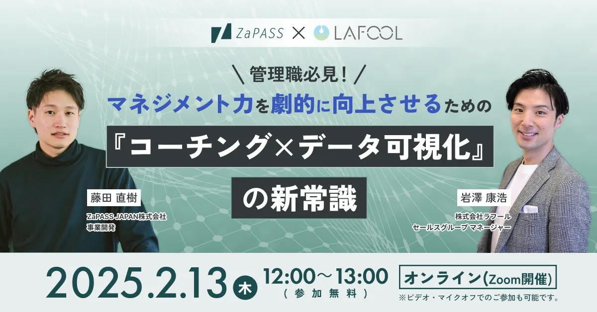 2025年2月13日、株式会社ラフールがZaPASS社と共催で取り組むセミナーは、現代の管理職必見の内容が詰まっています。このセミナーは、変化の激しいビジネス環境において、マネジメント力を強化するための新たなアプローチ「コーチング」と「データ可視化」の融合に焦点を当てています。