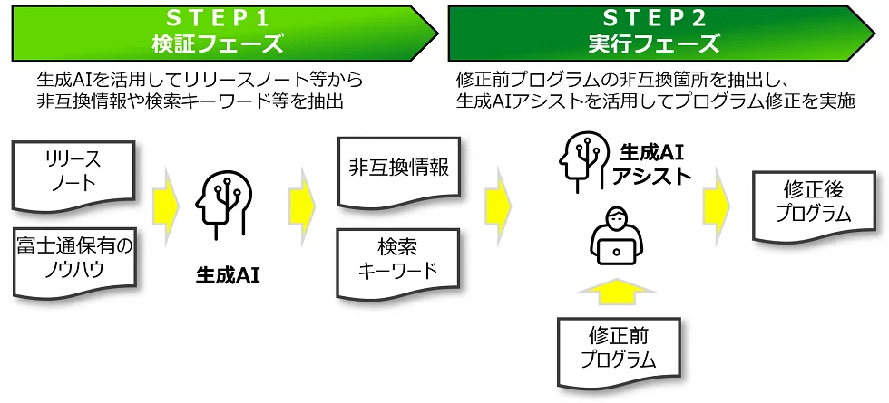 2025年1月16日からは、実行フェーズに移行し、生成AIを使い、非互換情報を基にアプリケーションの修正を進めています。これにより、さらなる効率化が期待されています。