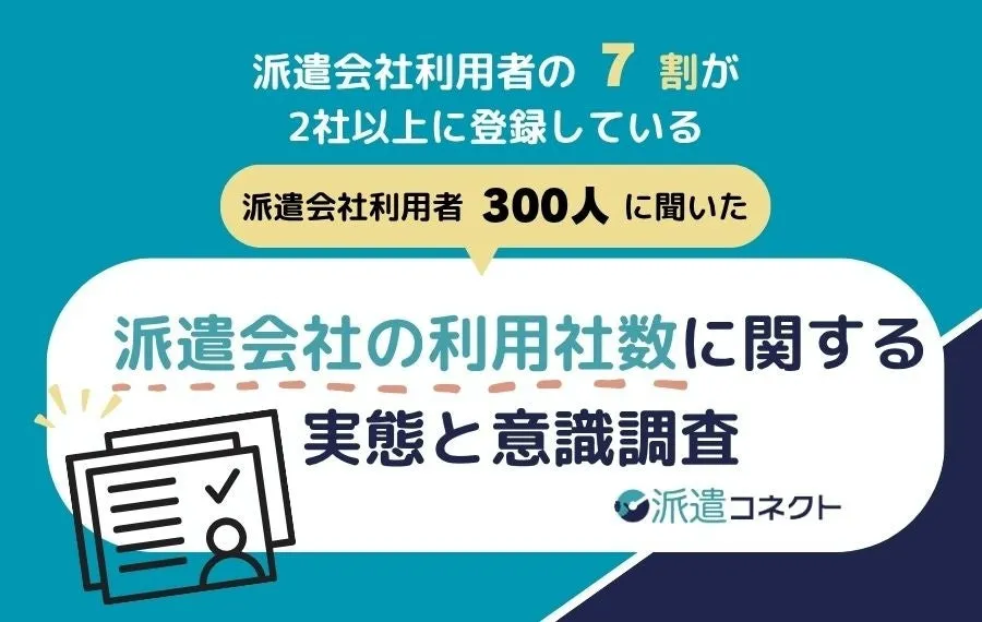 ビジコネット株式会社が実施した派遣会社利用者対象の実態調査において、約7割の人々が複数の派遣会社に登録していることが明らかになりました。今や、1社に依存するのではなく、複数社を活用することが新常識となりつつあると言えます。特に「2〜3社程度の併用」が理想と考える人が約半数を占め、実際にこの範囲での登録者が多いことが報告されています。