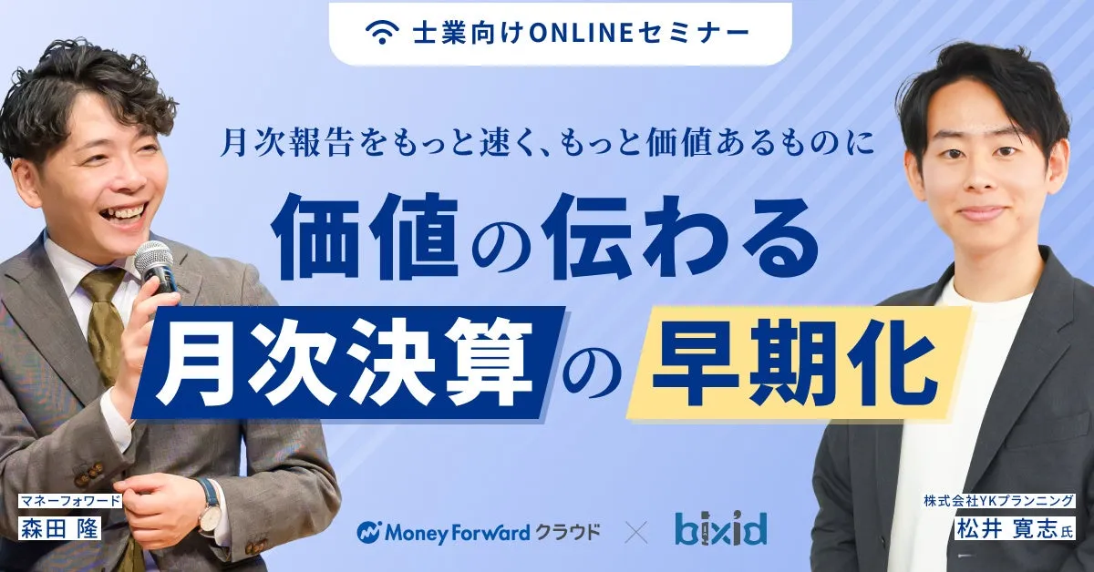 2025年7月3日(木)、経営支援クラウド『bixid(ビサイド)』を提供する株式会社YKプランニングが、株式会社マネーフォワードと共催で、会計事務所向けのオンラインセミナーを開催します。このセミナーのテーマは「月次報告をもっと速く、もっと価値あるものに」です。法律や規則が日々変化する中、迅速な経営判断が求められる企業にとって、月次報告の重要性はますます高まっています。このセミナーでは、月次決算の早期化を実現する手法を実演を交えながら紹介します。