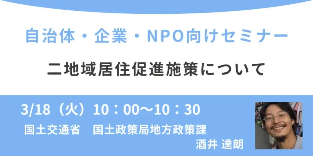 国土交通省が主催するこのオンラインセミナーは、地域を超えた人材のシェアや防災力の向上、さらには地域活性化につながる重要な情報が得られる場です。今後の地方創生にとって欠かせない「二地域居住」に関する知識を深めることで、地域の未来を共に考えるきっかけになること間違いありません。ぜひ参加してみてはいかがでしょうか。