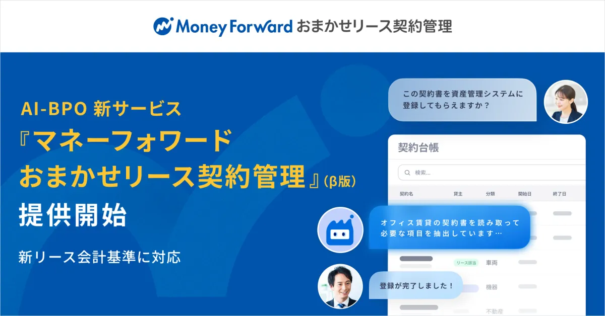 株式会社マネーフォワードは、AI技術とBPO(ビジネスプロセスアウトソーシング)を融合させた新サービス『マネーフォワード おまかせリース契約管理』(β版)の提供を開始しました。このサービスは、企業がリース契約管理において直面する手間や負担を軽減することを目的としています。