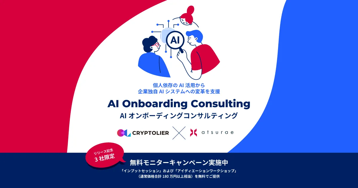 アツラエとクリプトリエは、企業のAI活用が「個人の技術」から「組織の競争力」へと進化することを目指し、今後はパートナー企業との連携を強化し、特化型プログラムの開発やサービスの共同提供も行う予定です。また、サービスの提供開始を記念し、モニターキャンペーンも実施します。AI活用に本気で取り組む企業には、無料でのセッションを提供する機会があります。