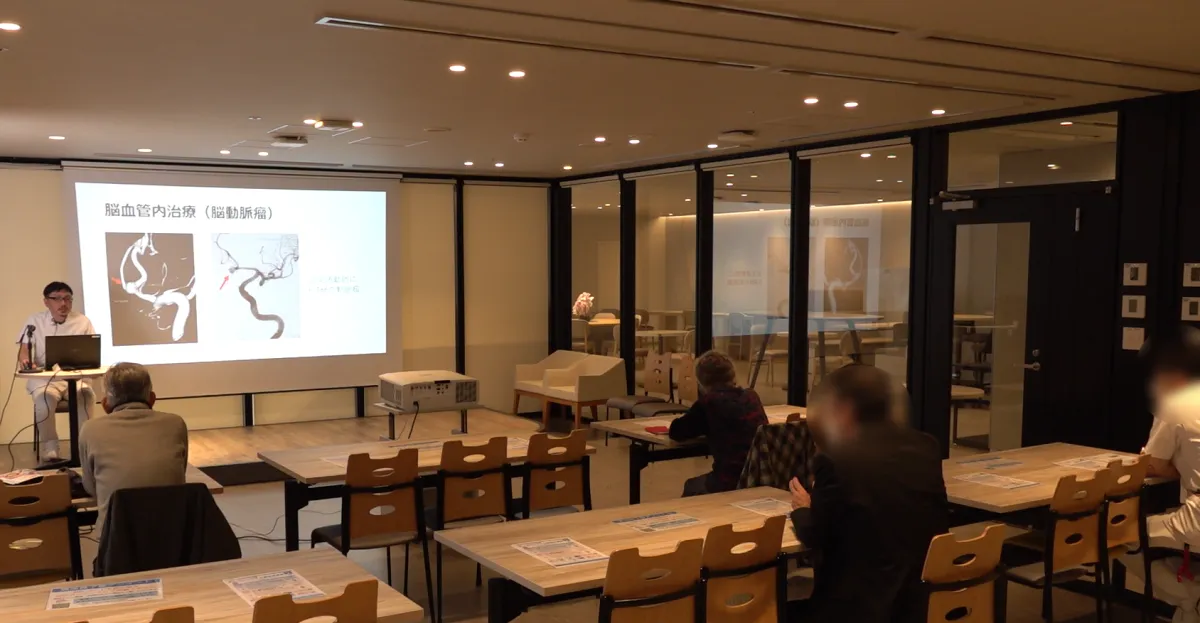 この治療法は、脳動脈瘤や脳梗塞に対する選択肢の一つであり、従来の開頭手術と比べ、入院期間を短縮し、回復を早めることができます。講座では、実際に医誠会国際総合病院で行われている脳血管内治療の手法を詳しく紹介し、低侵襲治療に向けた取り組みについても解説されました。