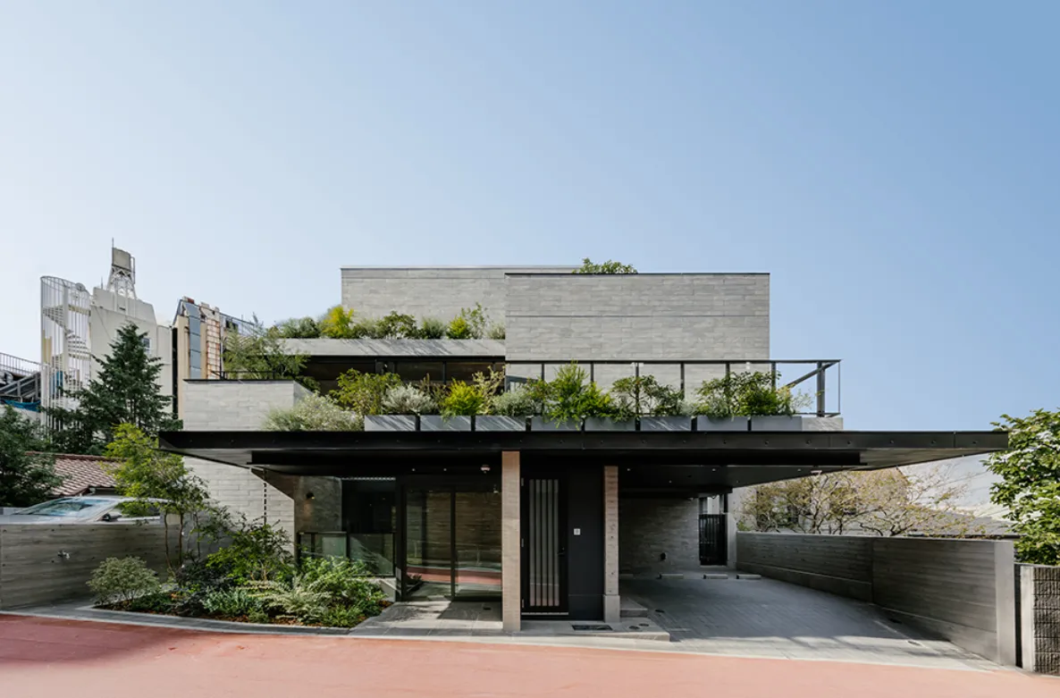 「ÉCLAVIE MEGURO」は、目黒特有の傾斜地を制約と見なすのではなく、逆にその特性を資源として活用しました。地下から屋上へと続く立体的な構成により、異なる性質を併せ持つ空間が階ごとに展開されます。これにより、それぞれの住戸が異なる光の取り入れ方や視線の抜けを体感できるのです。