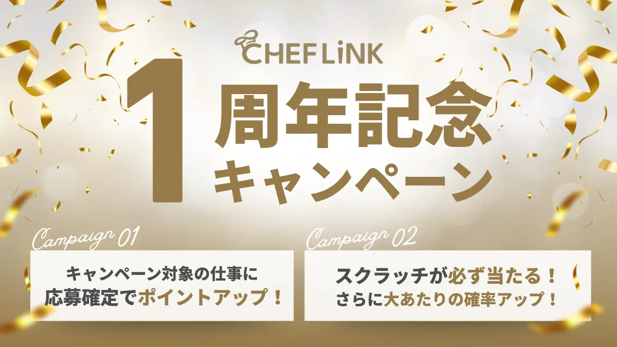 1周年を記念して、CHEFLINKでは特別キャンペーンを実施することが発表されました。具体的には、2025年10月27日から11月27日までの期間中、登録シェフを対象にしたポイント獲得のチャンスが用意されています。参加条件を満たすことで、特別ポイントを獲得し、将来的にはAmazonギフト券などに交換できるチャンスが広がります。