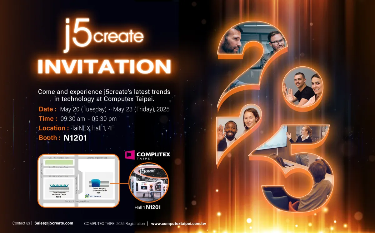 2025年5月20日から23日まで、台湾台北で開催される"Computex"にて、j5createが新たな技術で作られた8つの革新的な製品を発表します。世界中で支持されるコンピュータおよびモバイルデバイス向けの周辺機器ブランドであるj5createは、この展示会で次世代技術を搭載した製品を紹介する予定です。来場者は、事務仕事やエンターテインメントを一新する新しいガジェットに触れることができる貴重なチャンスです。ブースN1201にぜひお越しください。