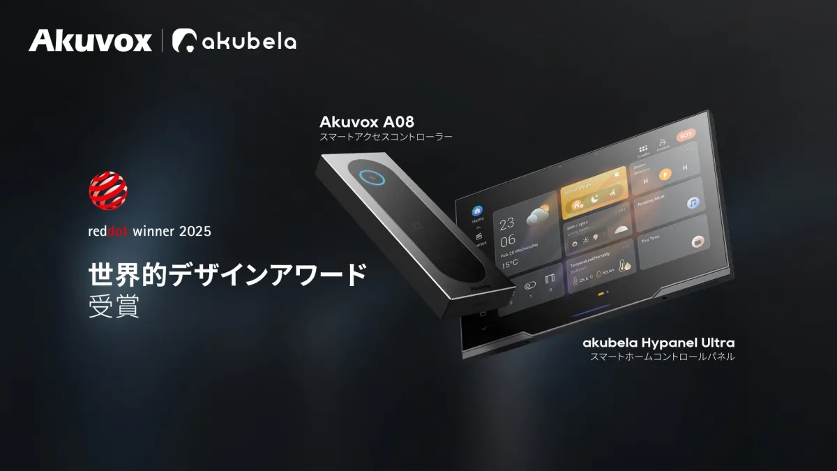 睿雲聯日本株式会社(Akuvox Japan)は、東京を拠点に革新的なスマートテクノロジーを発信している企業です。この度、同社が扱う2つの製品、Akuvoxの「A08アクセスコントローラー」とakubelaの「HyPanel Ultra」が、世界的に権威のある「2025年ドイツ・レッドドット・デザイン賞」をダブル受賞しました。これは、デザインと機能性の両方で高い評価を受けた結果であり、同社の技術力とデザインセンスが光る瞬間を象徴しています。
