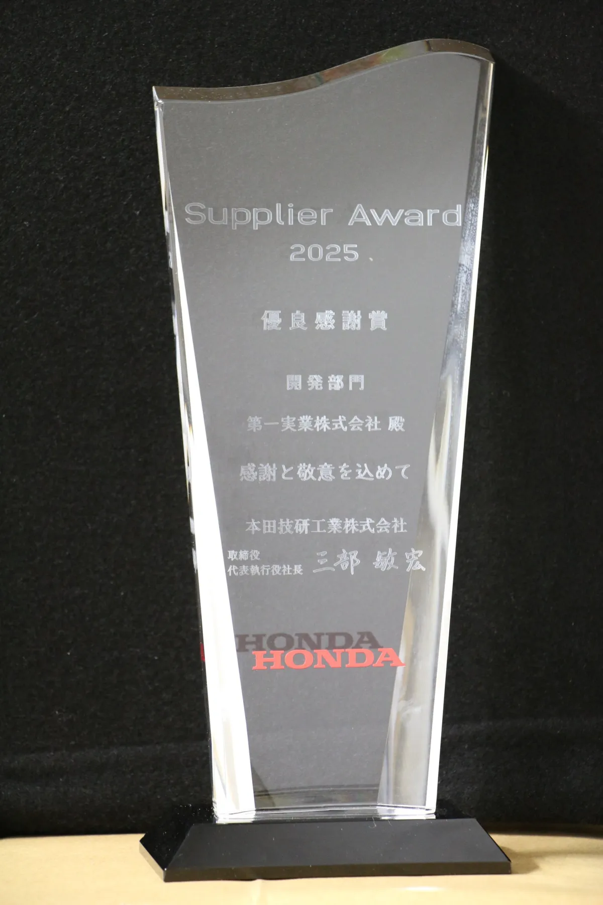 本田技研工業は、自社の取引先の中から、業界で顕著な功績を残した企業を表彰する「優良感謝賞」を設けています。この賞は、取引先との良好な関係を大切にし、相互に成長を促すことを目的としています。特に、開発部門において受賞することは一般的に難しいと言われていますが、第一実業はその期待に応える活躍を示しました。