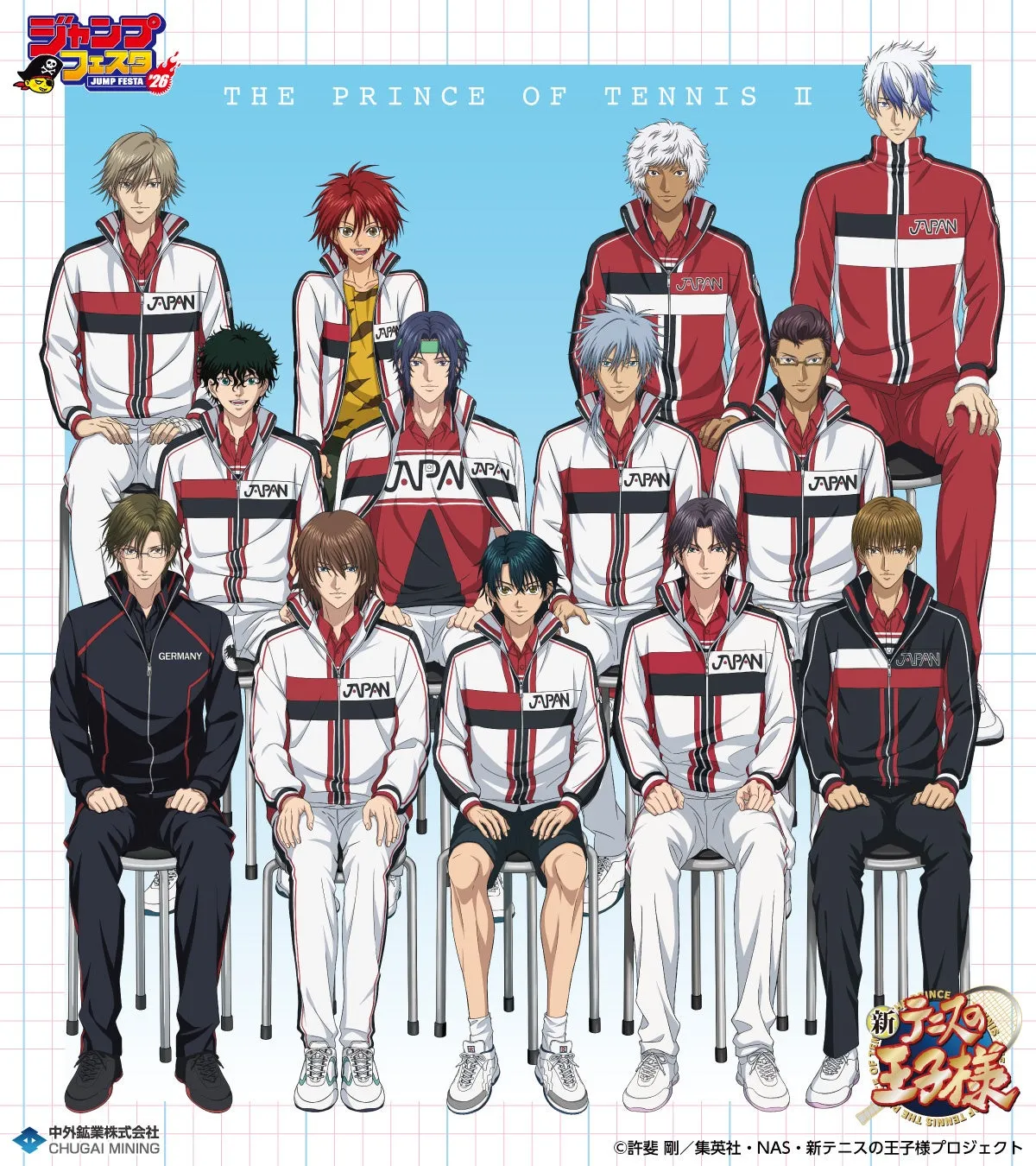 アニメ『新テニスの王子様』のファンに朗報です!2025年12月20日(土)から21日(日)にかけて幕張メッセで開催される「ジャンプフェスタ2026」にて、キャラクターグッズの企画・製作・販売を手掛ける中外鉱業株式会社から、選手名鑑をテーマにした新作アイテムが提供されます。これに合わせて、描き下ろしイラストを使用したさまざまな商品が展開予定です。
