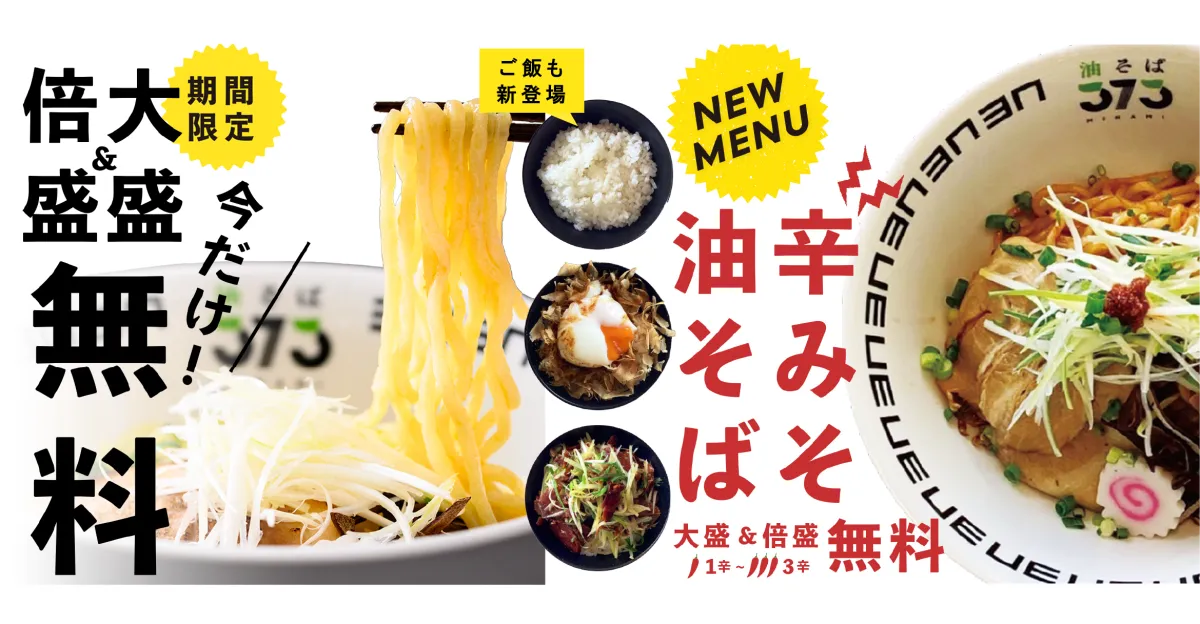 幅広い世代に親しまれる「油そば373」の新たなシーズン、ぜひ訪れてみてはいかがでしょうか。温かい油そばで、冬の訪れを感じてみてください!