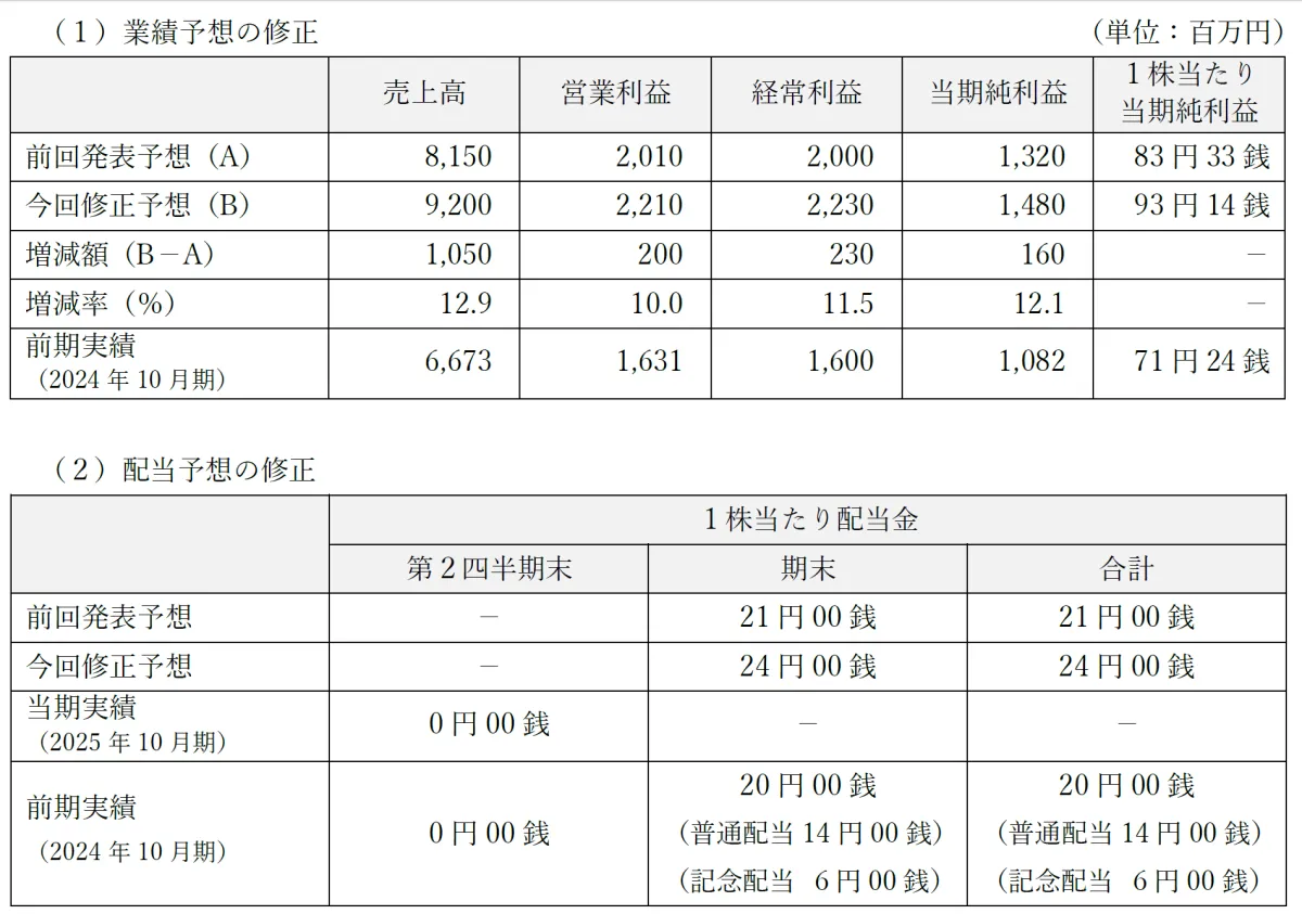 業績の好調な伸びに伴い、同社は2025年10月期の業績予想を上方修正することを決定しました。期末に向けての成長軌道も期待され、企業は引き続き成長を遂げる見通しです。