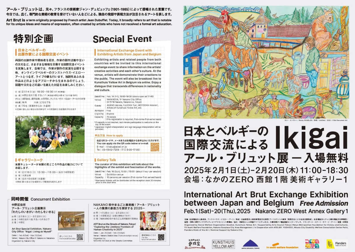 2025年2月1日(土)から20日(木)、東京都中野区のなかのZERO西館で、日本とベルギーによるアール・ブリュット展「Ikigai」が開催されます。アール・ブリュットとは、特に専門的な教育を受けていないアーティストによる独創的な作品を指し、この展覧会は昨年ベルギーのギスラン博士博物館で大好評を博したものの再構成版です。新たに追加された作品とともに、実力派の14名のアーティストの作品が展示され、日常生活における「生きがい」をテーマに、さまざまな創造性が披露されます。