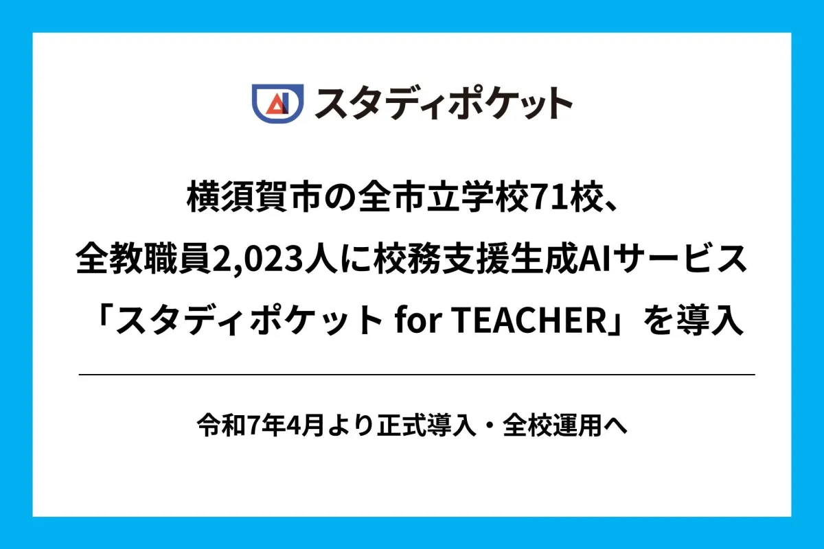 神奈川県横須賀市において、市立学校の教育現場に大きな変革がもたらされています。2023年4月、同市内にある71校の全教職員2,023人に、校務支援生成AIサービス「スタディポケット for TEACHER」が正式に導入されることが決まりました。この取り組みは、教育機関向けの生成AIサービスを展開するスタディポケット株式会社が実施し、実際の運用は令和7年4月から始まります。