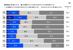 この36.2%という数字は、全体の22.7%という割合の中でも特に高いものであり、世代別で見ても他の年齢層に比べて際立っています。調査によると、50代における取り組み実施者はわずか17.0%にとどまり、15~19歳との間に19.2ポイントもの差が存在することが浮き彫りになりました。また、前回の調査においても、15~19歳の取り組み実施率は8.6ポイント増加し、過去最高の数値を記録しています。