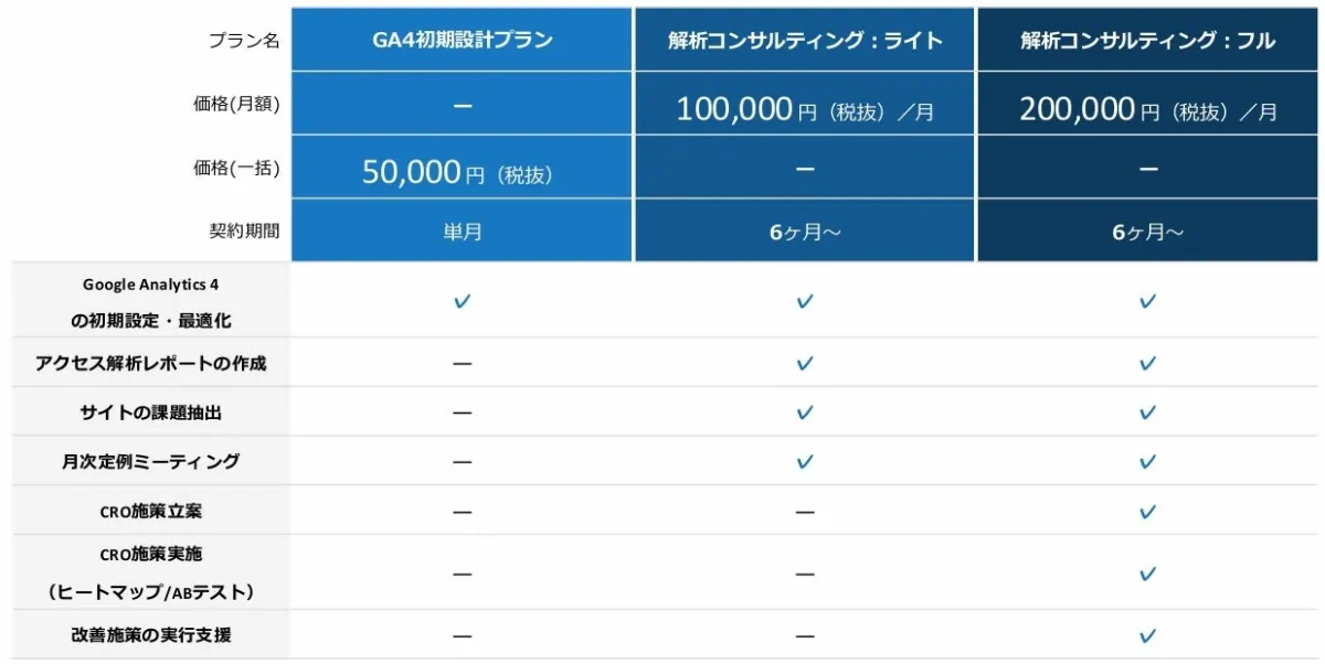 特定の期間内に無料相談を行ったお客様には、GA4初期設計費を通常の半額で提供するキャンペーンも実施中です。興味のある企業はこの機会にぜひ相談してみてください。
