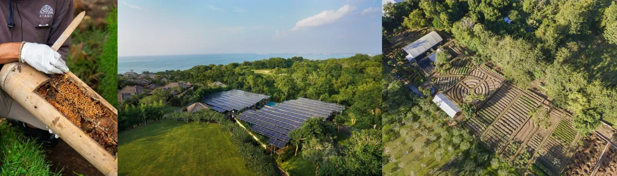 アヤナバリでは、多様性と気候へのレジリエンスを高めるために活動も行っています。敷地内の養蜂場で毎月ブラックハニーを生産するなど、自然との共生を意識した取り組みが行われています。また、脆弱な沿岸環境の保護のためには護岸壁や防波堤の整備にも取り組んでいます。