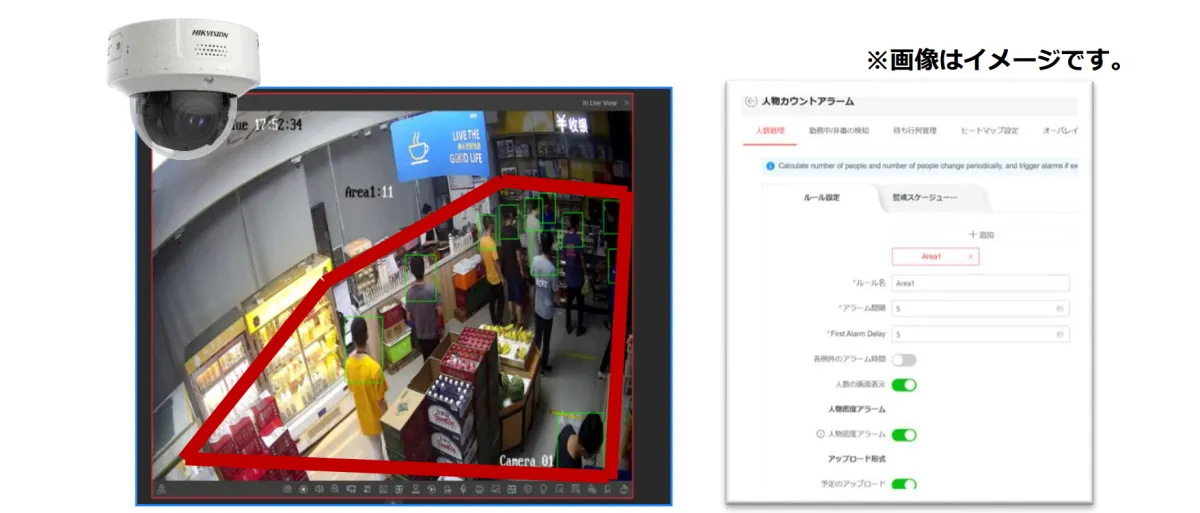 こうしたオーバーツーリズムの影響を軽減するために、HIKVISION JAPAN株式会社はAI技術を活用した新しい対策を導入しています。特に注目されているのが、AIカメラによるエリア内の人数カウント機能です。この技術を使用することで、特定のエリア内にいる観光客の人数をリアルタイムで把握可能となります。もし人口密度が一定のしきい値を超えた場合、システムが自動的に管理者に通知を行い、混雑の悪化を未然に防ぐことができます。