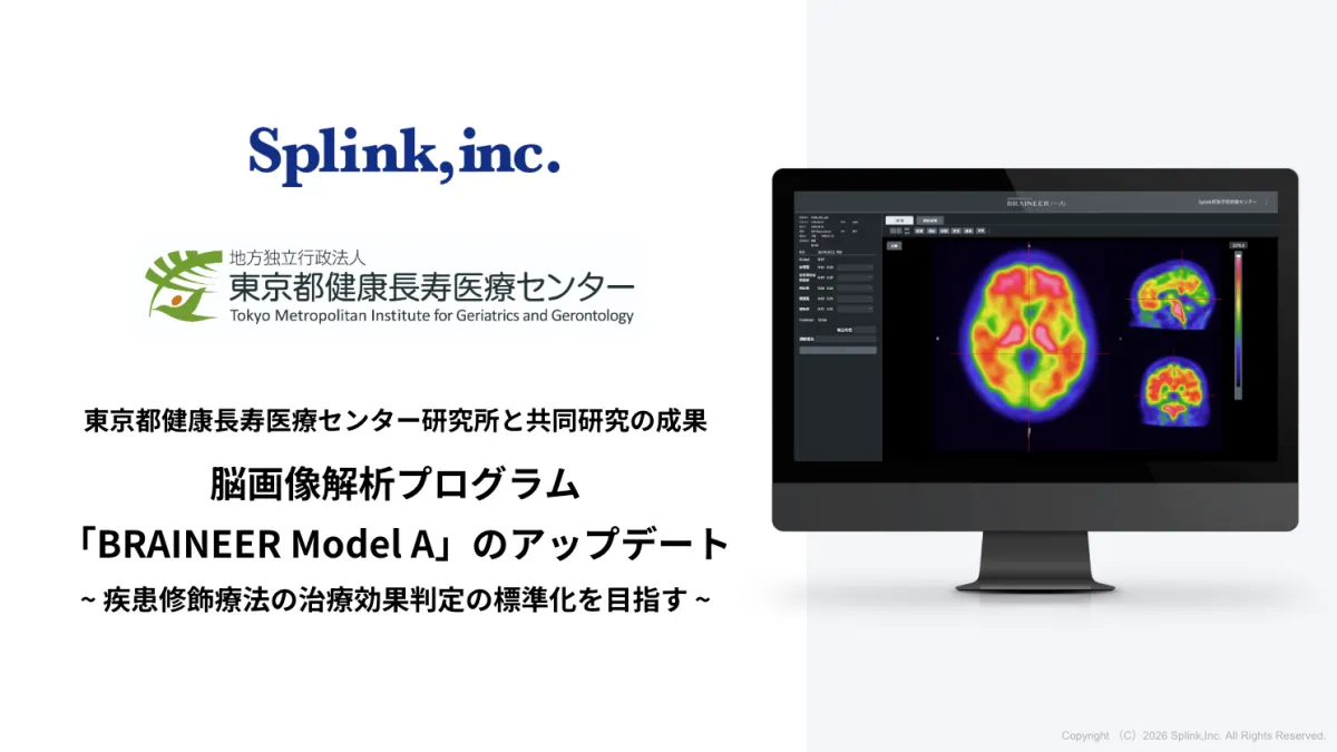 東京都港区に本社を構える株式会社Splinkは、脳画像解析プログラム「BRAINEER Model A」の新しいバージョンを発表しました。このプログラムは、東京都健康長寿医療センター研究所との共同研究の成果に基づいており、特にアルツハイマー型認知症に関連するアミロイドPET画像の解析を支援します。新しいバージョンである「version 1.5.0」は、医療現場での治療効果の判断をサポートし、患者の治療選択の幅を広げることを目的としています。