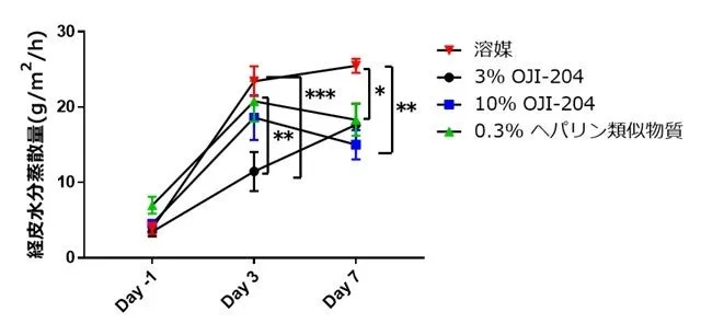 OJI-204は硫酸化ヘミセルロースに属し、多糖類の一種で、抗凝固作用や抗炎症作用があることが知られています。この特性に着目し、研究チームは乾燥肌モデルマウスを用いてその効果を検証しました。