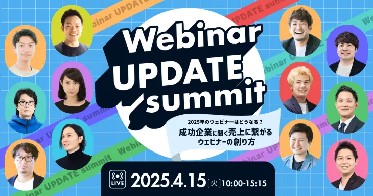 4月15日(火)、オンラインで開催される「Webinar UPDATE summit」では、業界で成功を収めている企業のマーケターたちが集まり、ウェビナーの効果的な技術や戦略について詳しく解説します。このイベントは、「2025年のウェビナーはどうなる?」というテーマのもと、参加者が売上や商談創出に繋がるウェビナーの設計ノウハウを得る絶好の機会です。