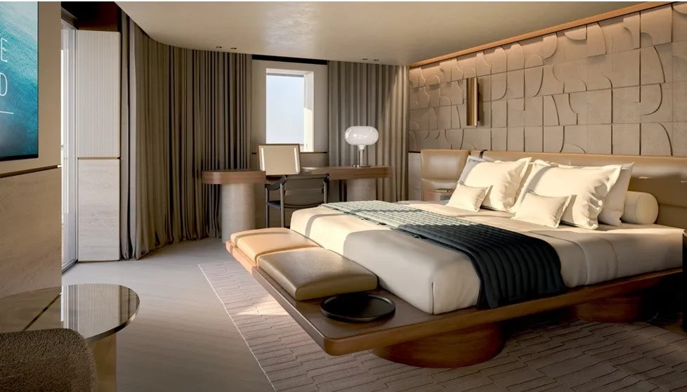 ウルキオラ氏がデザインした『オーナーズ レジデンス』は、海とのつながりを感じられるような現代的なオーシャンリビングがテーマです。このスペースは、ユーザーの快適さを考慮した上で美しさを追求したデザインが特徴です。デッキ7および8の船尾に位置し、全体で280㎡の広さを誇るこのレジデンスには、特に開放感のある125㎡のテラスがあり、振りそそぐ太陽の光を浴びながら大海原の絶景を楽しむことができます。