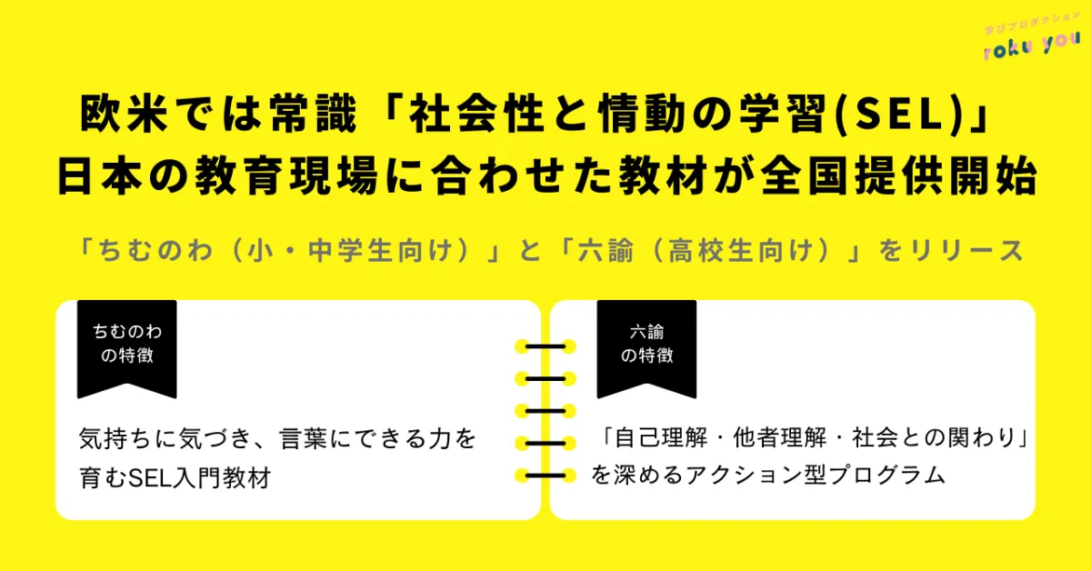 株式会社rokuyouが提供を開始したのが「ちむのわ」と「六諭」です。これらは、SEL(Social Emotional Learning)を基盤としたプログラムで、子どもたちの自己理解や他者理解を促進し、健全な人間関係の構築を目指します。