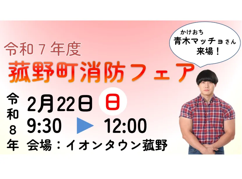 消防フェアは令和8年2月22日(日)の午前9時30分から正午まで、イオンタウン菰野のけやき防災パーク周辺で開かれます。なお、雨天の場合はイベントは縮小され、施設内での開催となりますので、天候に合わせて訪れてください。