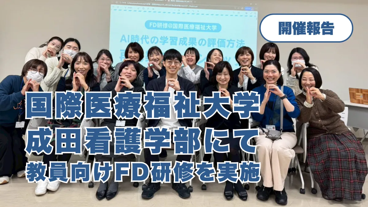 2026年1月8日、国際医療福祉大学 成田看護学部において、パパゲーノの代表である田中康雅氏によるFD(ファカルティ・ディベロップメント)研修が行われました。この研修のテーマは「AI時代における学習成果の評価方法の再構築」であり、約30名の教員が参加しました。