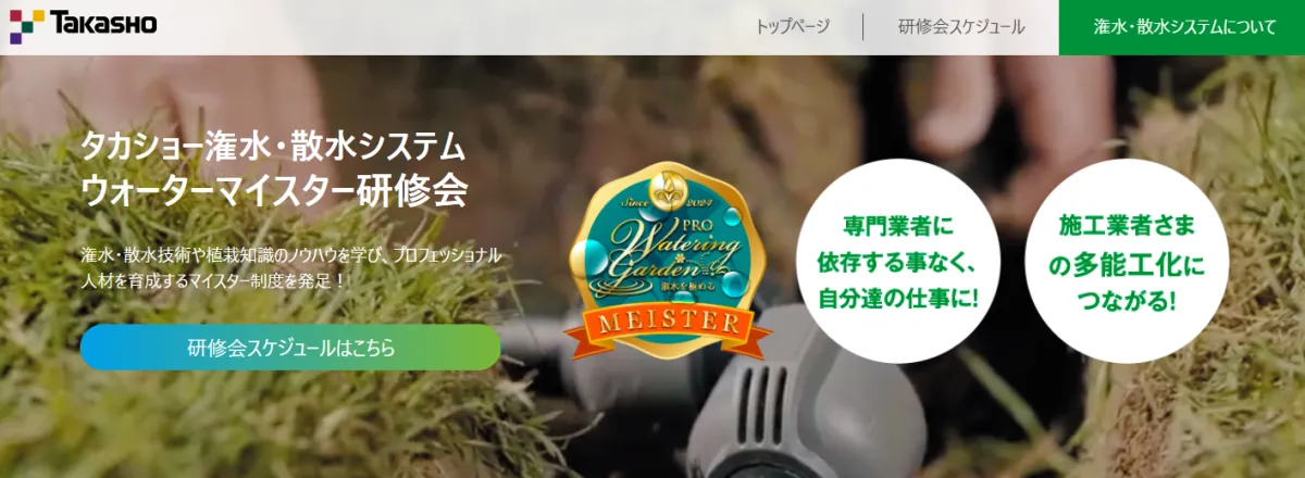 株式会社タカショーは、2024年7月に設立した『タカショー潅水・散水システムウォーターマイスター』の専門研修制度において、2025年4月1日(火)からe-ラーニング形式での研修を提供します。この取り組みは、潅水・散水の専門人材を育成することで、緑が中心の豊かな空間づくりに寄与することを目指しています。