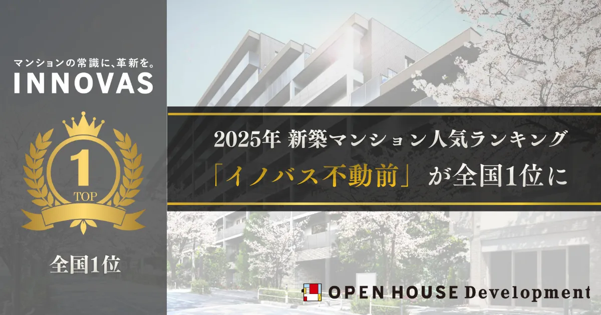 2025年の新築マンション人気ランキングで、株式会社オープンハウス・ディベロップメントの「イノバス不動前」が、東京23区および全国のランキングで1位に選出されました。この結果は、株式会社LIFULLが運営する不動産情報サービス「LIFULL HOME'S」によるもので、1月から12月中旬にかけてのページビューと資料請求数を元に算出されています。