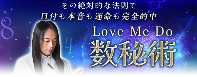 公式サイト「Love Me Do◆数秘術」は、現在最も当たると話題の占い師、Love Me Doが運営する占いサービスです。これまで数々の重要な出来事、たとえば芸能界の結婚、スポーツ界の重大ニュースなどを予言し、多くの実績を持っています。特に注目されているのが、またもや当たりすぎると評判のオリジナル占術『絶対数』です。