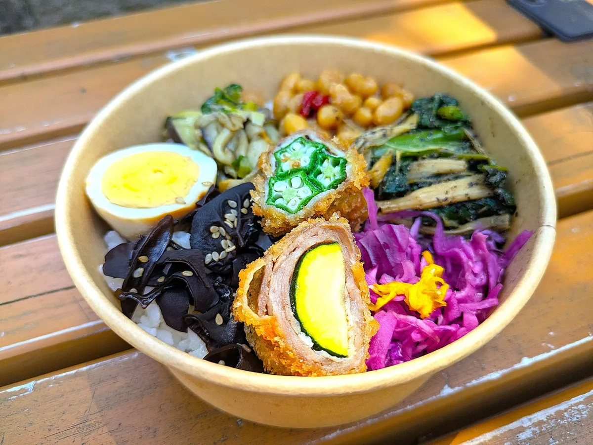 日替わりで提供される薬膳弁当の一例を以下に紹介します。日替わり薬膳弁当(1,100円)には、はと麦ご飯、台湾茶葉卵、黒きくらげの佃煮、夏野菜の肉巻きフライなど、多彩な品目が盛り込まれています。特に、黒きくらげは生理痛や美肌効果が期待でき、紫キャベツのビネガー煮はアンチエイジングや眼精疲労に効果的です。こうした食材選びには、日常生活でほんの少しの工夫を加えることで、健康向上につながるというメッセージが込められています。