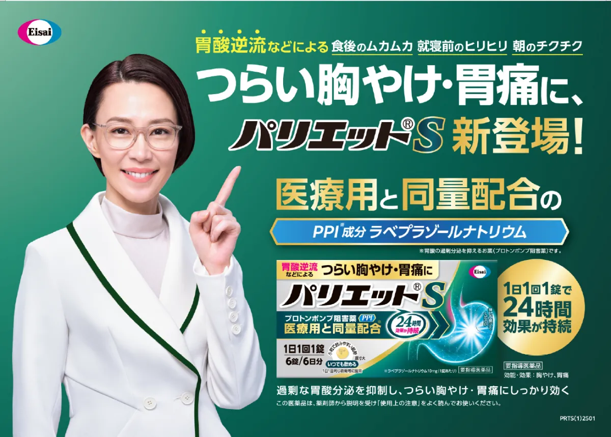 エーザイの「パリエット®S」は、そんなビジネスパーソンの強い味方です。1日1回の服用で効果が持続し、食前食後に関わらず利用できます。この製品には、プロトンポンプ阻害薬(PPI)成分が含まれており、つらい胃痛や胸やけに対応します。