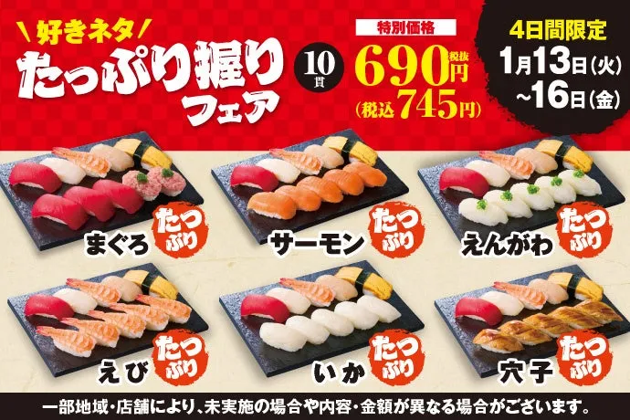 価格は10貫で690円(税込745円)という非常にリーズナブルな設定。多彩なネタの中からご自身のお気に入りを選んで、ボリューム満点のお寿司を楽しむことができます。この期間の限定商品であるため、特別感もあふれています。