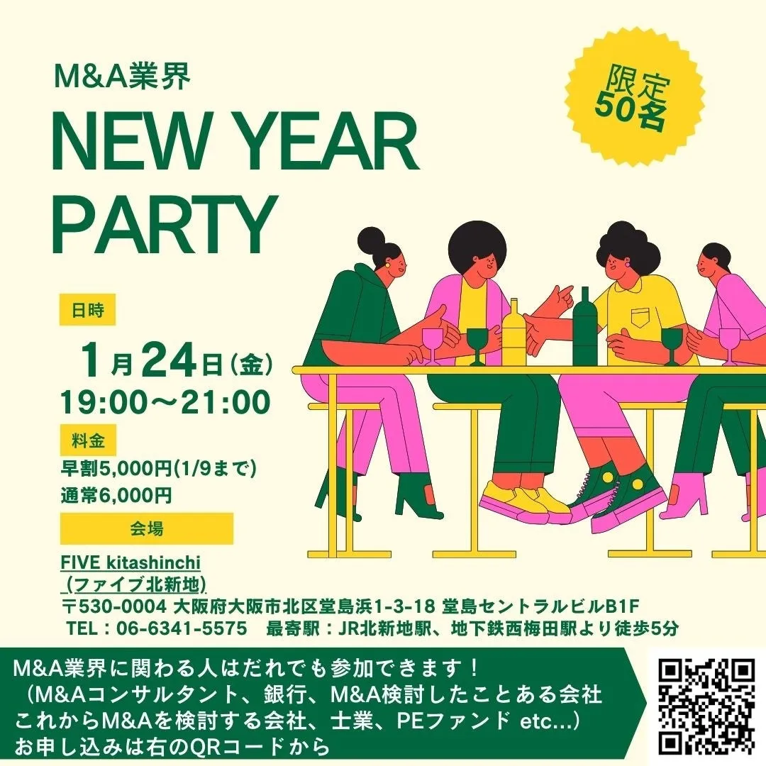 2025年1月24日、大阪北新地にて、AWAS株式会社主催の「M&A業界 NEW YEAR PARTY」が開催されます。このイベントはM&A業界で関わる人々が一堂に会し、意見交換やビジネスの構築を促進するための大規模な交流の場です。参加者は50名を予定しており、参加申し込みはすでに開始されています。