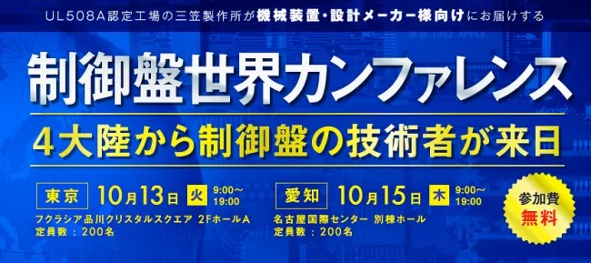 日本の制御盤製造業界において、集中的に情報提供を行う貴重な機会がやってきます。UL認定を受けた制御盤メーカー、三笠製作所が主催する【制御盤世界カンファレンス】が、東京と愛知で開催されることが決定しました。この無料カンファレンスでは、海外から招かれた制御盤の専門家たちが集まり、国内メーカーに対して世界標準の規格や最新の技術トレンドについて議論します。参加者は、機械制御室における法令遵守や、将来的な企業戦略に必要な知識を得られます。