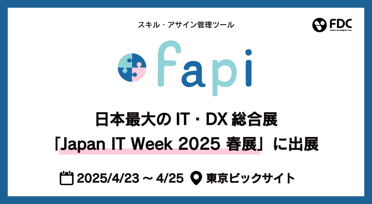 2025年4月23日から25日まで、東京ビッグサイトで開催される「Japan IT Week 2025 春展」。ここで、スキル・アサイン管理支援ツールである『fapi』が展示されます。本記事では、出展内容やブース情報について詳しくお伝えいたします。