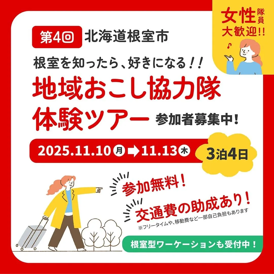 この3泊4日のツアーでは、地域おこし協力隊の方々との交流を通じて、根室市での『暮らし』を体験できます。具体的には、協力隊の活動内容を説明するセッションや質問コーナーが設けられ、参加者は実際に地域のリアルな声に触れることができます。また、半日観光があり、根室の名所を巡りながらその魅力を直接感じられます。