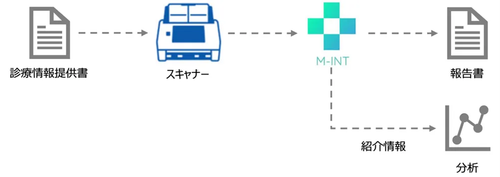 M-INTは、医療機関向けの特化したデータベースと文書・画像共有システムから成る医療連携サービスです。患者さんに最適な医療リソースを探すための機能を提供し、業務を大幅に効率化する役割を担っています。これにより、従来の紙ベースの煩雑な手続きを取り除き、デジタル化を進めます。医療現場での迅速な情報交換を可能にし、全体の医療連携をシームレスなものにすることが目標です。