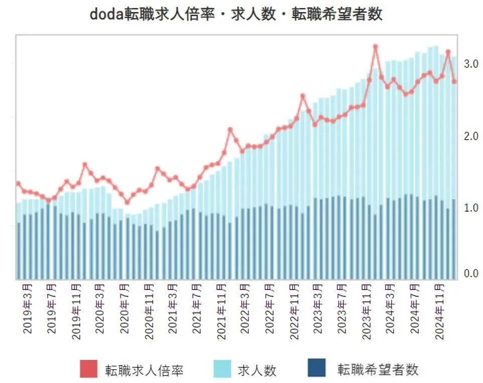 2025年1月のdoda転職求人倍率:2.74倍に減少