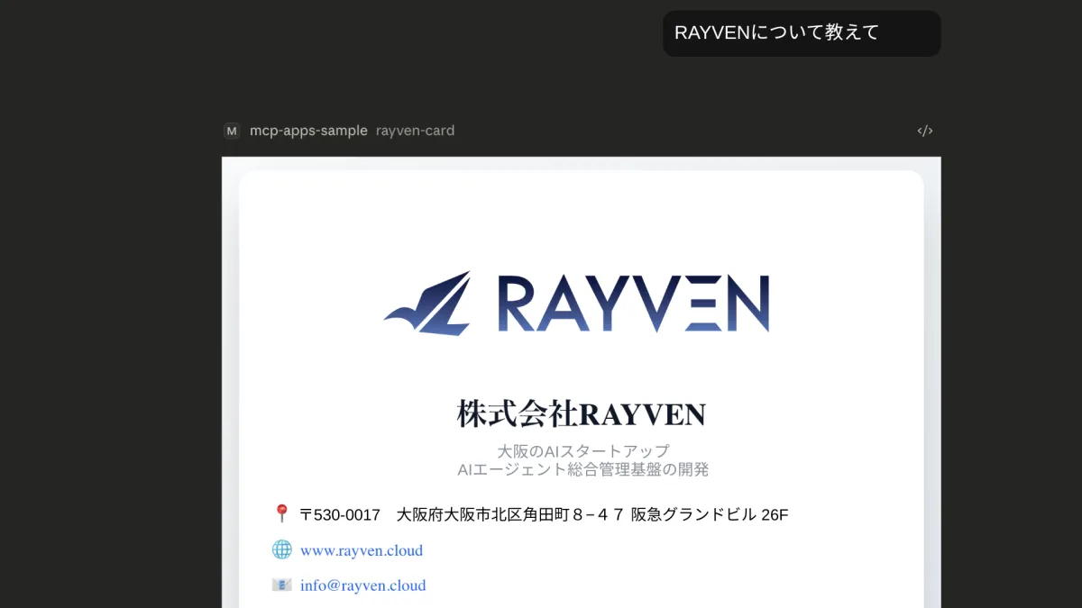 株式会社RAYVEN(本社:大阪府大阪市、代表取締役:鈴山佳宏)は、AIチャットプラットフォーム向けのアプリケーション「MCP Apps」の開発支援において、Anthropic社のClaudeへの対応を開始しました。この新サービスは、ChatGPTと同様にリッチなユーザーインターフェースをチャットの中で提供することを目的としています。