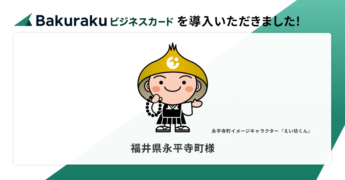 Wiki3: 福井県 永平寺町 バクラクビジネスカード 株式会社LayerX 福井県永平寺町