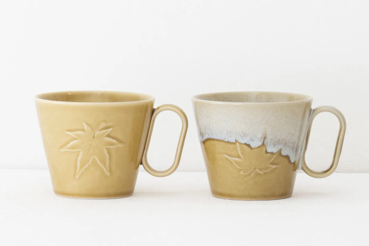 今回の新商品を手掛けたのは、宮島御砂焼の三軒の窯元の一つである対厳堂の三代目、山根興哉氏です。彼は、近年では日常使いに適した磁器製品の製造にも力を入れており、安定した品質のものを生み出しています。特に、今回のマグカップには「もみじ紋」という装飾が施されており、広島県の県木であるモミジの葉脈を写し取った美しいデザインが特徴となっています。