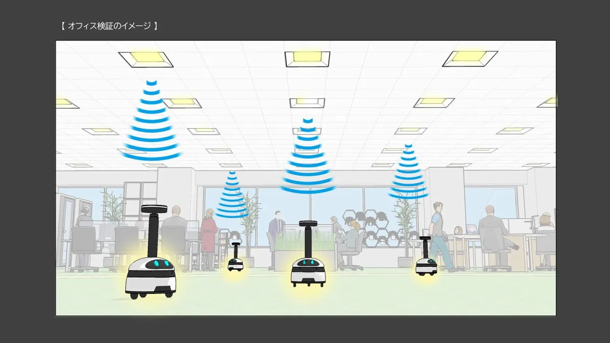 この課題への対策として、パナソニックとugoは照明設備とロボットの連携に取り組むことに決めました。具体的には、天井に設置されるビーコン付きの照明器具を利用して、フロア内のロボットが95%の稼働エリアで独自に再開できるようにすることを目指します。また、照明設備と建物内のエリアを紐づけることで、人や物、ロボットの効率的な配置を検討し、さらなる運用効率を図ることが可能となります。