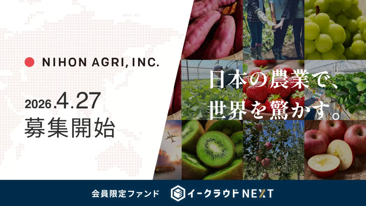 スタートアップ投資のプラットフォームを展開するイークラウド株式会社は、2026年4月27日から個人向けの会員限定ファンド「イークラウドNEXT」の募集を開始します。このファンドは、日本の農業構造を革新することを目指す株式会社日本農業への投資を行うものです。