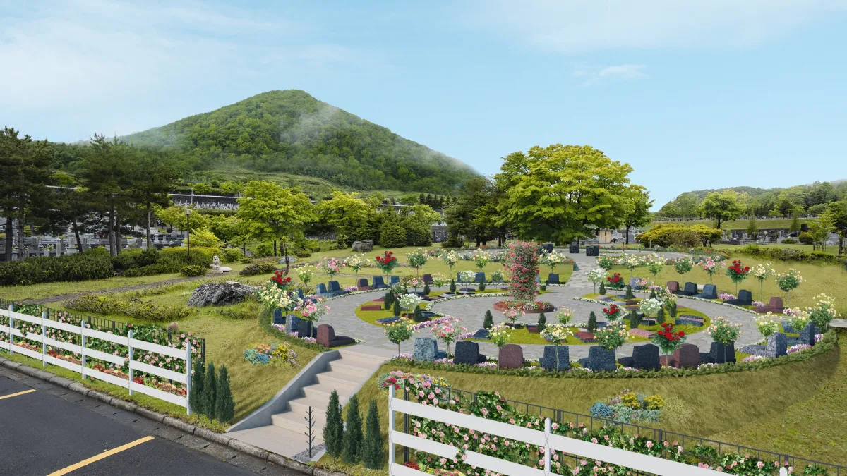 藤野聖山園は、開園から40年の歴史を誇る大規模霊園です。札幌ドームの約6.5倍の面積を誇り、札幌市内を一望できる高台に位置しています。園内は、利用者の心を癒す美しい自然に囲まれており、多くの方々に親しまれてきました。この度、40周年を記念して、新しいスタイルの樹木葬「バラと眠る樹木葬」が9月10日(土)にオープンします。