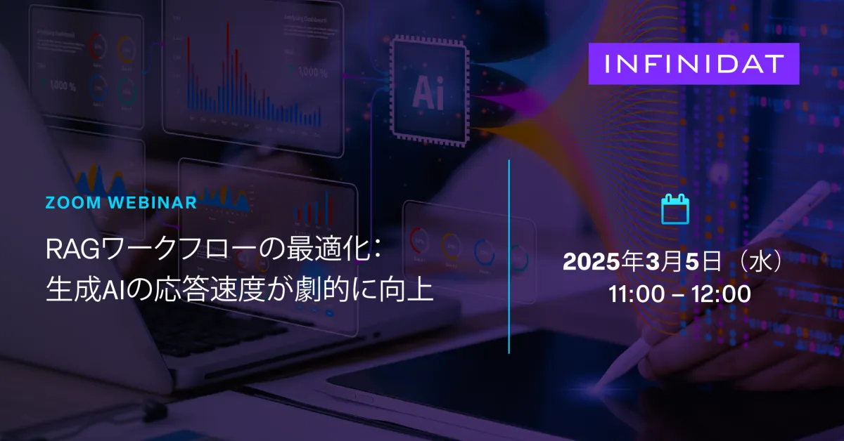 Infinidat Japan合同会社は、生成AI(GenAI)を活用する企業向けに新しいワークフロー改善手法を公開するWebinarを開催します。タイトルは「RAGワークフローの最適化:生成AIの応答速度が劇的に向上」で、日時は2025年3月5日水曜日の11:00から12:00までとなっています。これは、Zoomを利用したオンライン形式で行われ、InfinidatのCMOであるEric Herzog氏が講演を行います。参加は無料ですが、事前に登録が必要です。